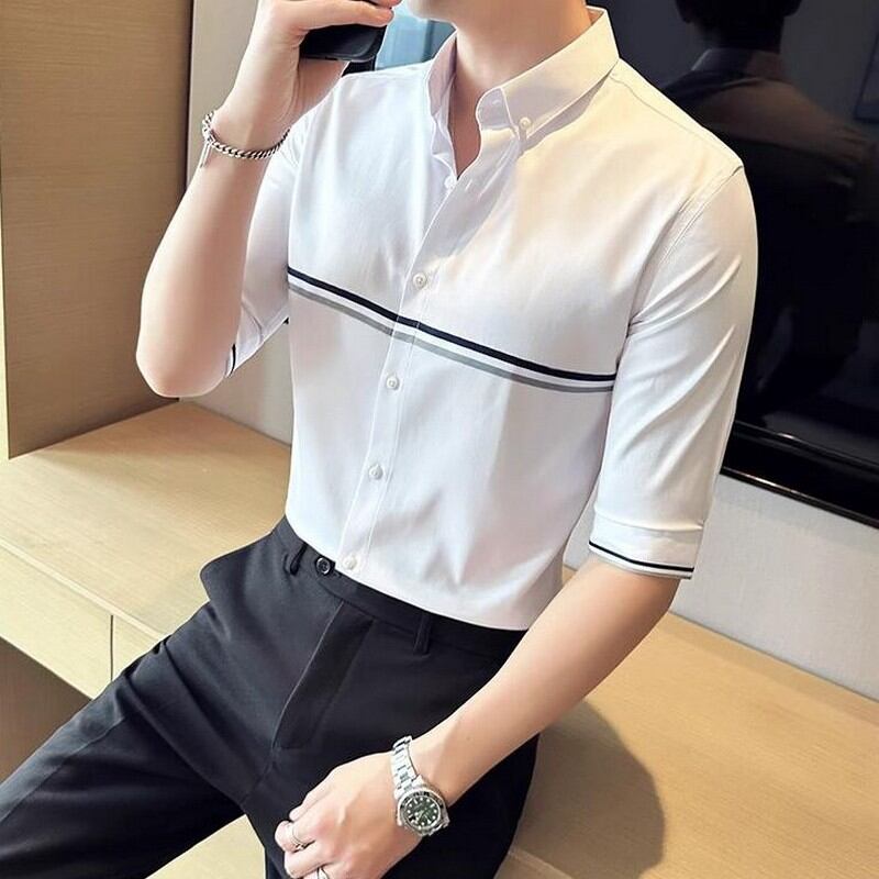 striped 3/4 sleeve shirt 00113