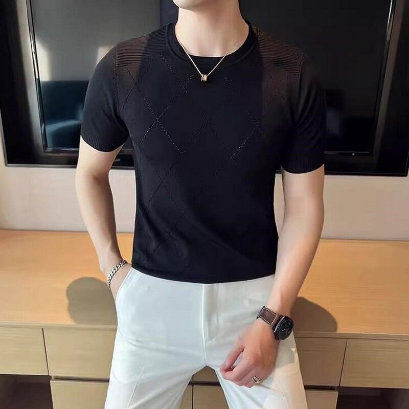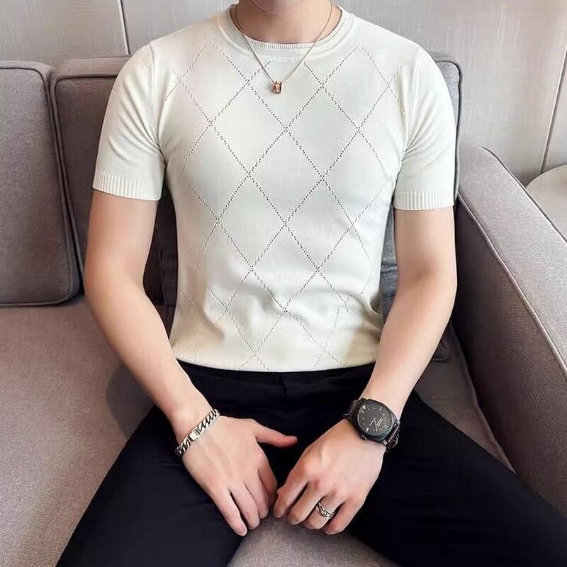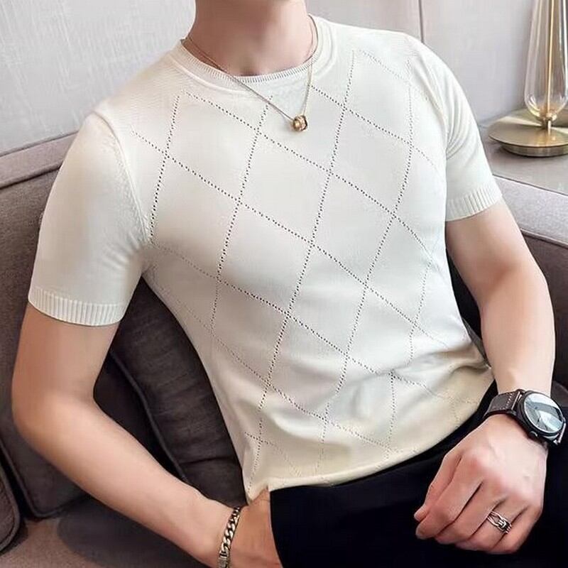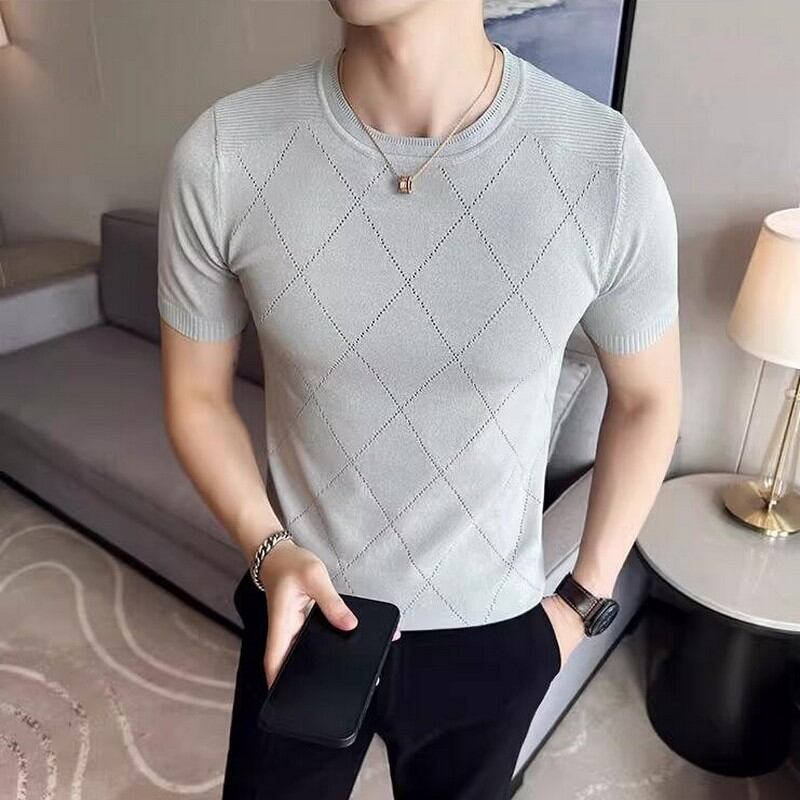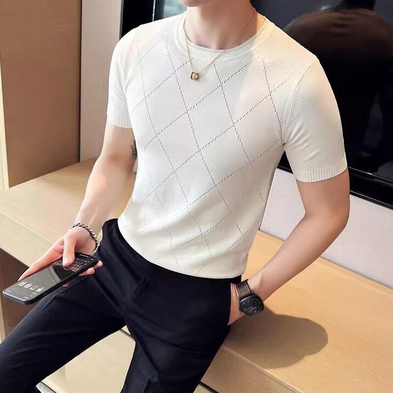 slim stretch plaid T-shirt 00131