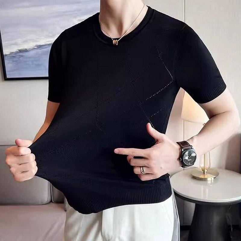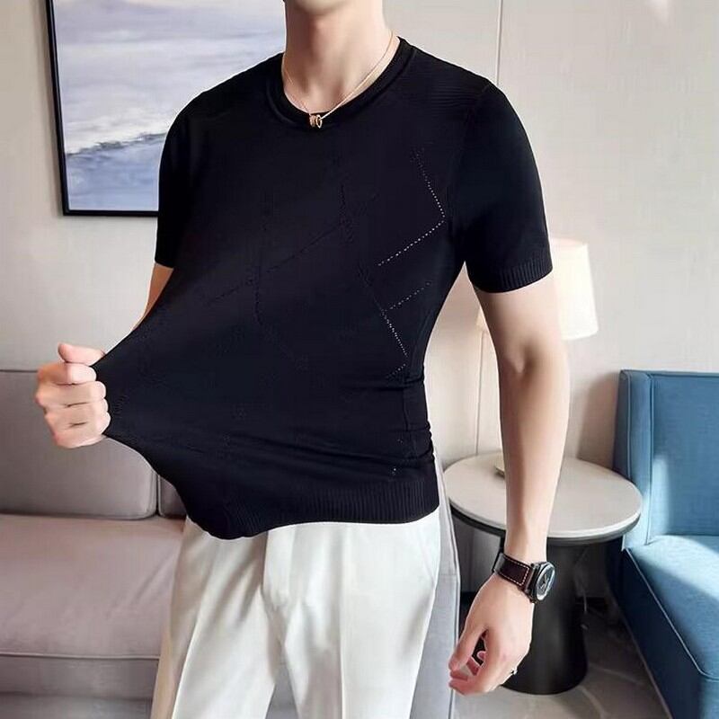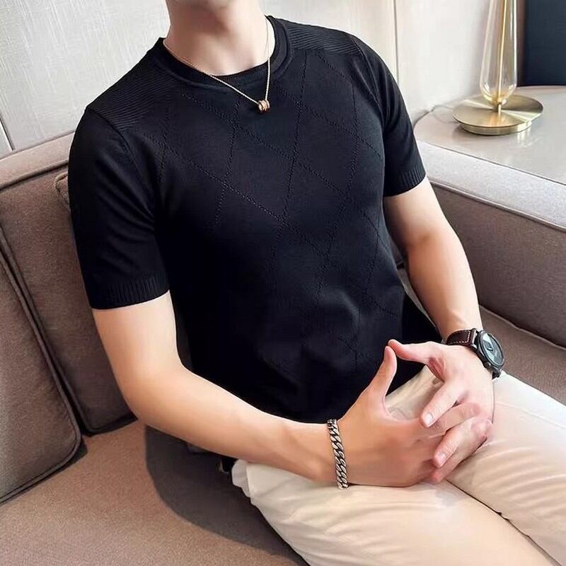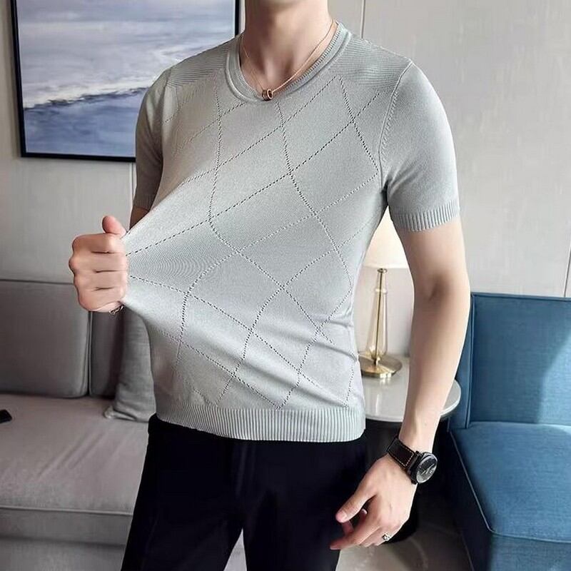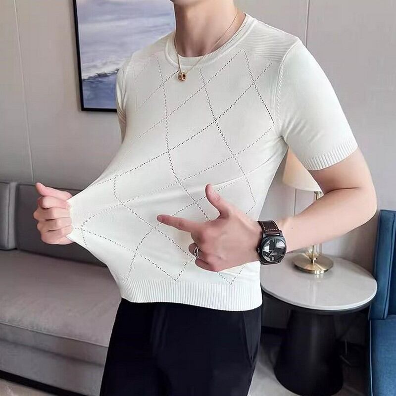 slim stretch plaid T-shirt 00131