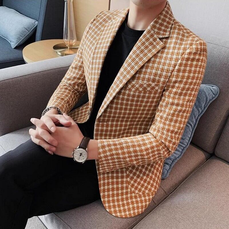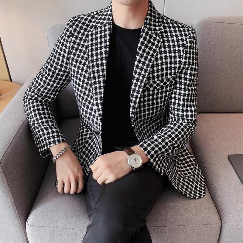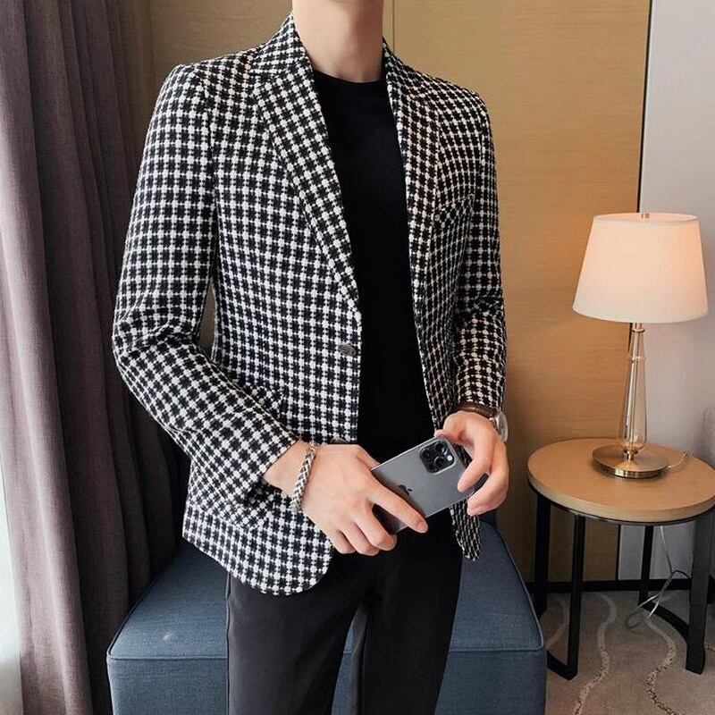 plaid formal suit jacket 00144