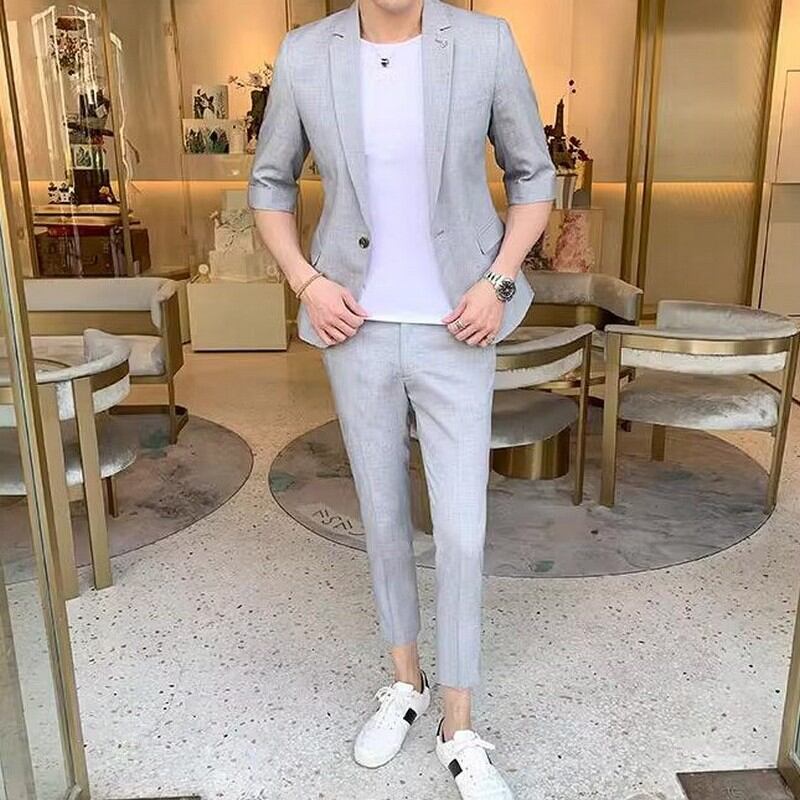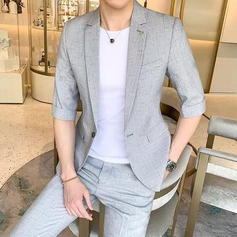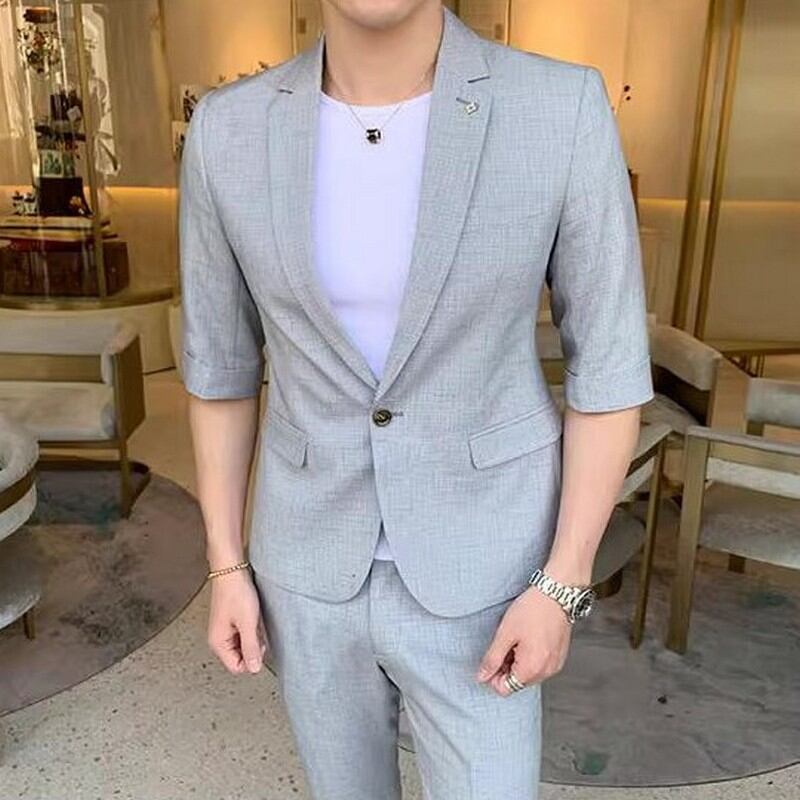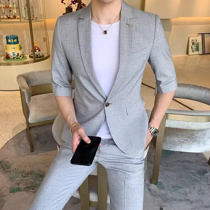 3/4 sleeve suit jacket + pants suit 2piece 00373